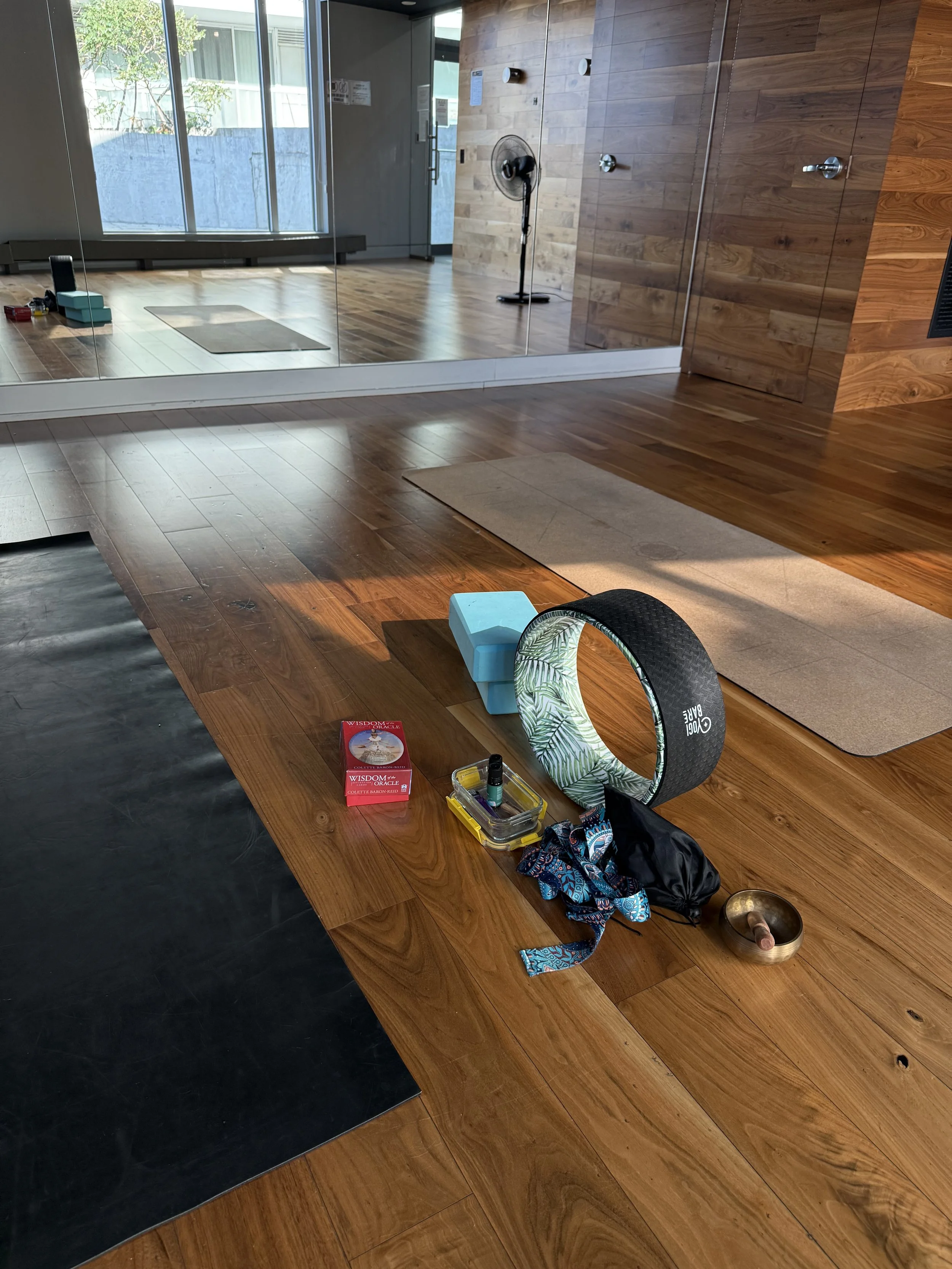 A yoga mat or blanket, pillows/bolsters, and a quiet space. I’ll also share links to oils and props if you’d like to recreate the full sensory experience at home.